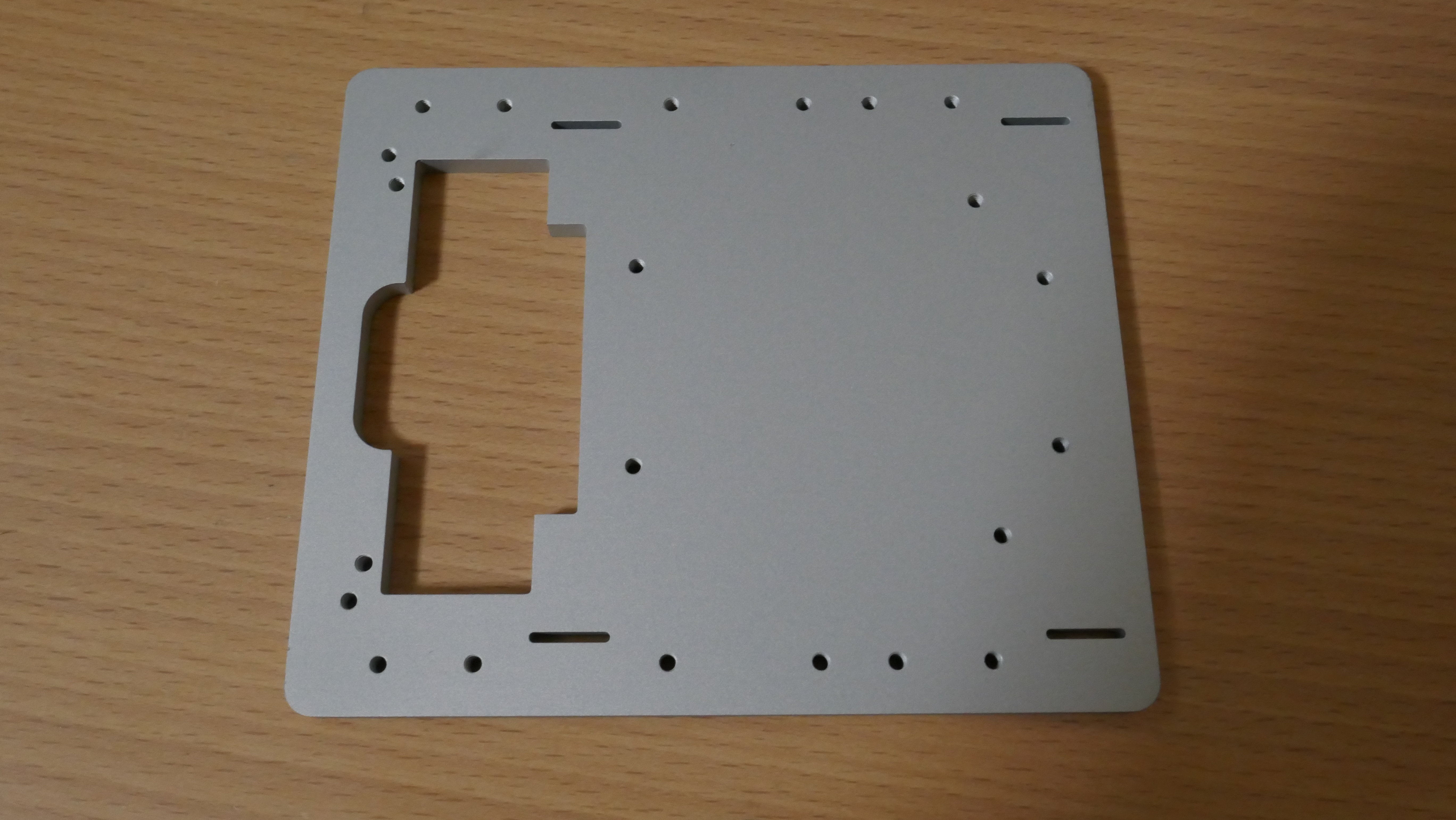 ロボットのフレームはアルミニウムをcnc加工してもらいました。 表面処理はアルマイト加工です。なので、素手で触りまくっても錆びにくいです。 そしてこの部品は400gほどありロボットの重心をかなり下げることができているので、フレームにアルミのCNCを選択したのは我ながらよい選択だったと思います。