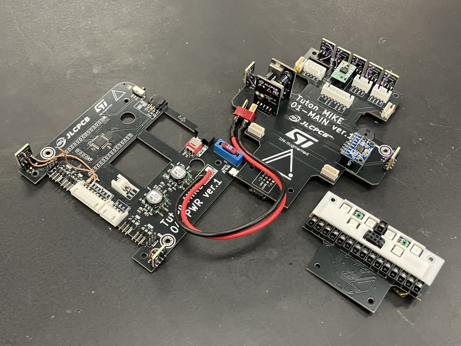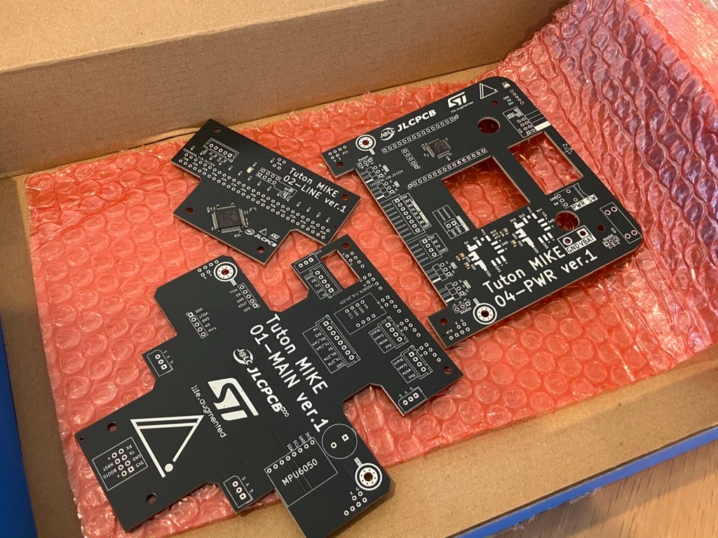 こちらが今回発注させていただいた基板です。3種類ともPCBAでSTMマイコン等を実装していただきました。