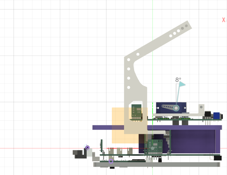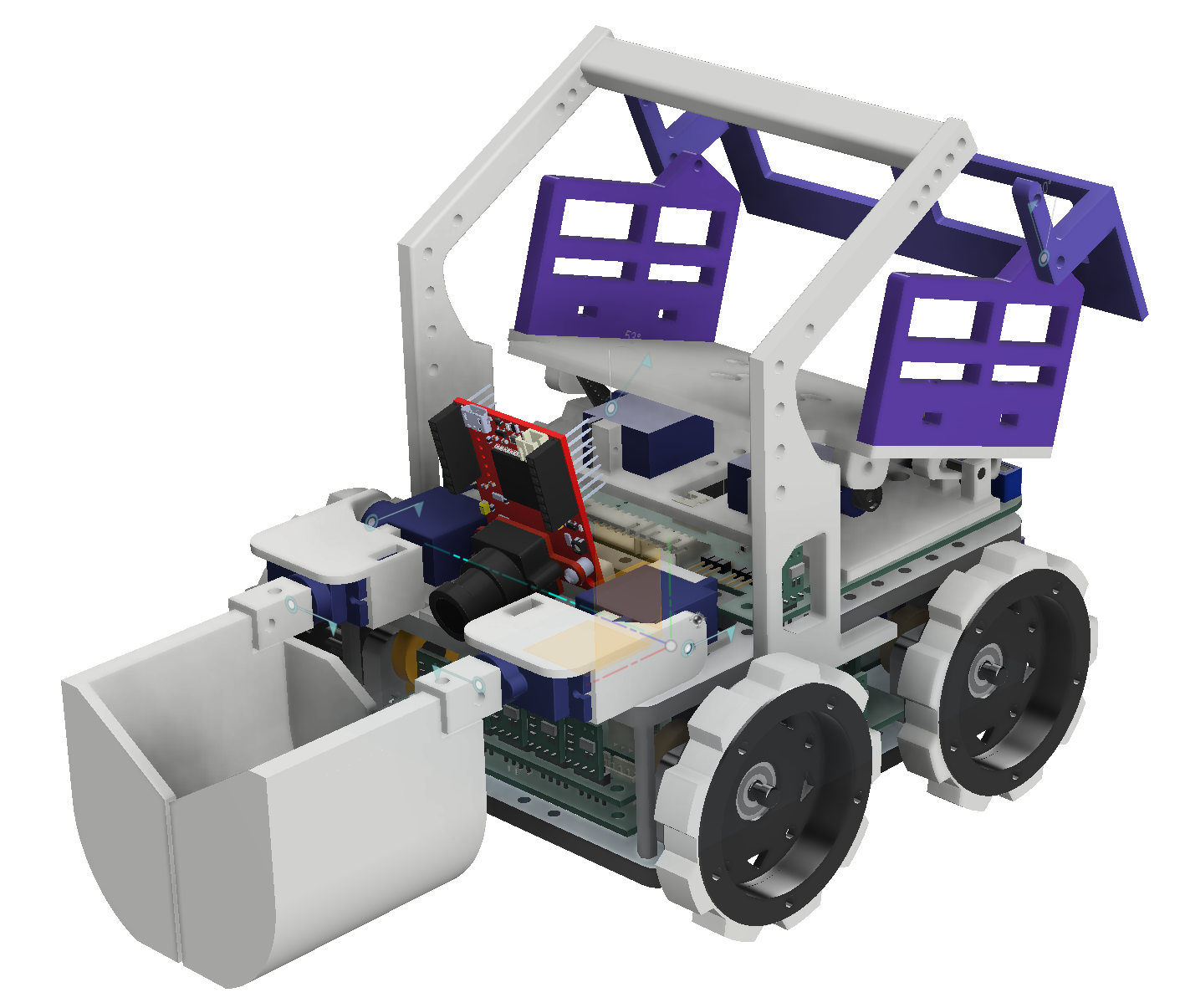 アームとかごをのせるとどうしても重心が高くなりがちですが、できるだけシンプルな機構にし、軽い3Dプリント部品を使用し、サーボモータをできるだけ低いところに設置したことで重心が高くなるのを防ぎ、ポチと同程度の重心の低さを保つことができました。