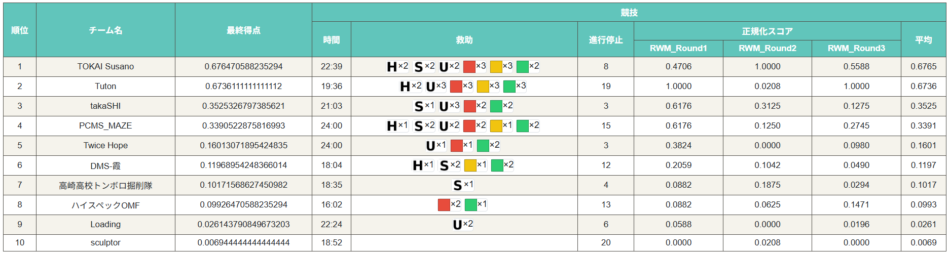 170点というあまりにも低い点数でしたが、他のチームの調子も悪かったようで正規化得点は1.00でした。